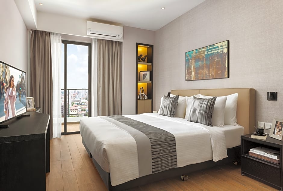 The air-conditioned suite features 1 bedroom and 1 bathroom with a bath and a shower. In the kitchen, guests will find a refrigerator, kitchenware, a microwave and a toaster. Featuring a balcony with city views, this suite also offers a washing machine and a flat-screen TV with satellite channels. The unit offers 1 bed.